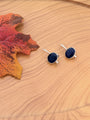 Elegant oval-shaped earrings featuring deep blue stones, set in a smooth silver frame.